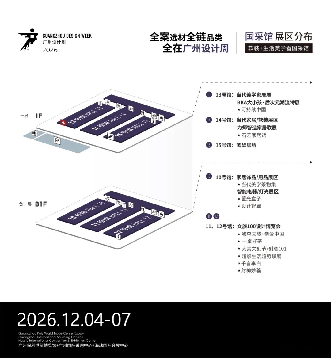 在2025广州设计周的基础上,2026广州设计周进一步优化调整了展区布局,同时在展商、展品和策展内容等方面将进行全面优化升级,便捷展商与观众之间的高效匹配和营商互动。