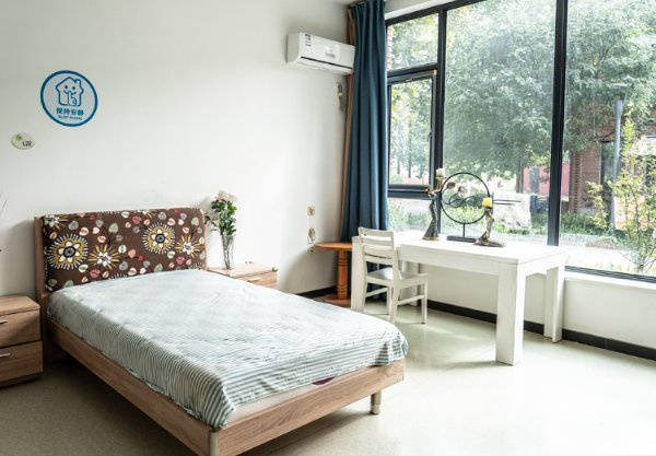 五星级宾馆式养护区:半非自理和认知照护、舒缓疗护长者入住,设置52平方米VIP套间、52平方米豪华双人间、31平方米普通双人间,有氧气装置。每层设有护士站,医护人员24小时值班,配备天轨移位系统,为半自理非自理长者站立、行走、康复、洗浴、如厕、室外活动和生活照料等提供保障。