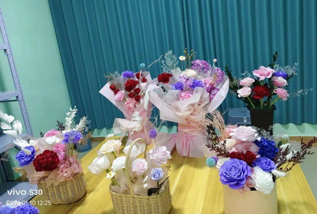 培训中,学员们从拘谨试探逐渐沉浸创作,不少人主动请教技巧、交流心得。精神障碍患者小林(化名)完成作品后感动不已,孤独症大龄学员小宇(化名)也主动帮助家人整理工具并表达了持续参与的意愿。据了解,参训学员均已掌握保鲜花养护、基础花束组装等入门技能,此次培训全程免费,结业者可优先获得辅助性就业岗位推荐,实现“学完即上岗”。