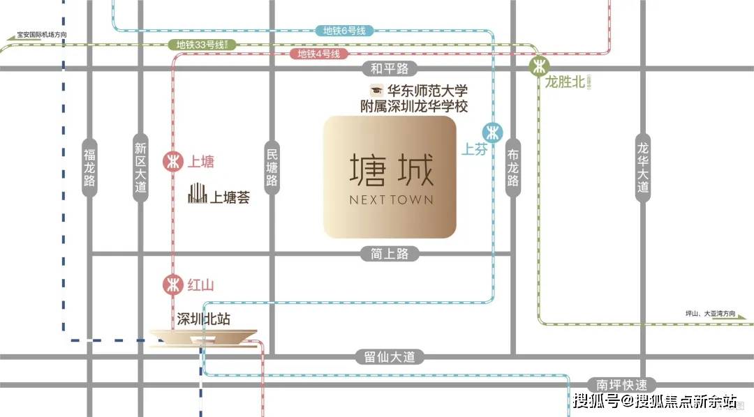 深圳都会核心区以轨道交通为核心,形成13大城市级中心枢纽节点。上塘位居龙华核心板块,以交通枢纽为核心,融入深圳13大都会枢纽之中,迎来擎领城市未来的机遇。