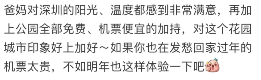 有网友在社交媒体上写道:“我妈第一次坐飞机,就是从老家直飞深圳,她说,这辈子没想到,过个年还能坐趟飞机。”