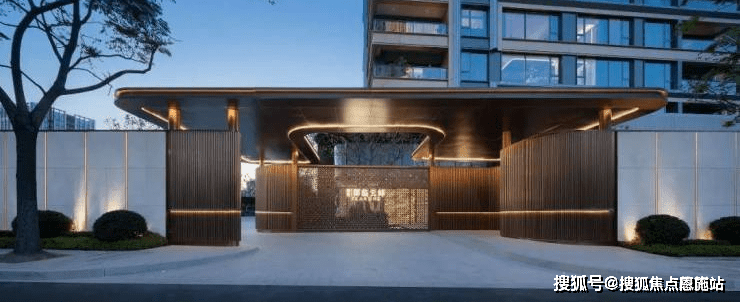 构成富有健康、静谧关怀的艺术之境;步入其中,水浪纹艺术小品、叠水台阶、镜面水景搭配户外休憩节点渐次铺陈,展现隐逸江河汇的惬意,身与心的从容。